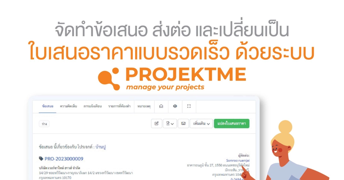 ให้งานเอกสารไวขึ้น จัดทำข้อเสนอ พร้อมเปลี่ยนเป็นใบเสนอราคาและใบแจ้งหนี้ รวดเร็ว มีประสิทธิภาพ และแม่นยำ ด้วยระบบ ProjektME