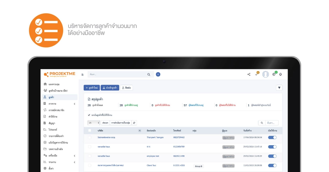 บริหารจัดการโครงการของคุณด้วยระบบ ProjektME ไม่ว่าคุณจะมีพนักงงานขายในมือกี่คน โครงการที่ต้องดูแลกี่โครงการก็สามารถจัดการเพื่อให้งานรันต่อได้อย่างง่ายๆ สามารถช่วยแนะนำและแก้ไขปัญหาให้กับพนักงานได้อย่างรวดเร็ว ไม่มีพลาด ปิดจบทุกงานอย่างมีประสิทธิภาพ