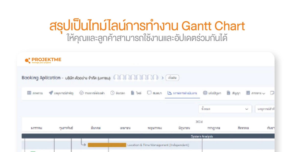 ทำงานง่าย สะดวก รวดเร็ว และเป็นระบบมากยิ่งขึ้น ด้วยการสร้างไทม์ไลน์การทำงานผ่าน Gantt Chart โดยการสร้างเหตุการณ์สำคัญและรายการที่ต้องทำ ที่สามารถมอบหมายงานให้กับแต่ละบุคคล พร้อมติดตามงานเพิ่มเติมได้แบบไม่พลาด โดยการแจ้งเตือนผ่านอีเมล จากนั้นระบบจะสรุปงานออกมาเป็นกราฟตารางการดำเนินงาน ให้ทั้งคุณและลูกค้าใช้ไทม์ไลน์ Gantt Chart และอัปเดตงานร่วมกันได้